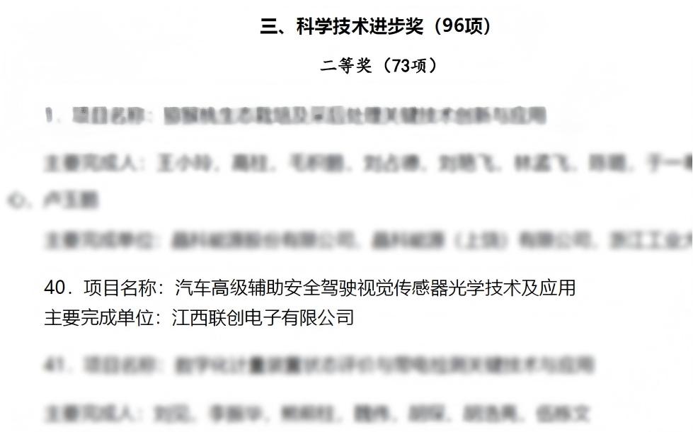 近日,江西省人民政府正式发布《关于2024年度江西省科学技术奖励的决定》(赣府发〔2025〕13号)江西联创电子有限公司申报的“汽车高级辅助安全驾驶视觉传感器光学技术及应用”项目荣获江西省科技进步奖二等奖。联创电子已连续三年获得省级科学技术奖励,充分彰显了公司在光学技术领域的卓越实力。